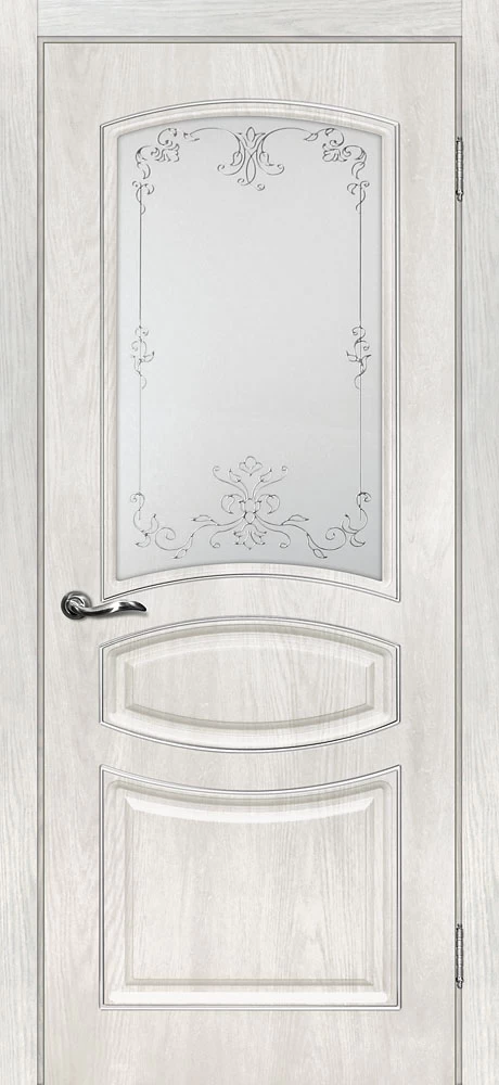 Качественная Межкомнатная дверь Сиена-5 Дуб жемчужный продается по цене 11 977 руб. за полотно. Доступные размеры 550x1900, 600x1900, 600x2000, 700x2000, 800x2000, 900x2000. Так же в наличии большой выбор комплектующих к данной модели, подходящих по цвету и фактуре.