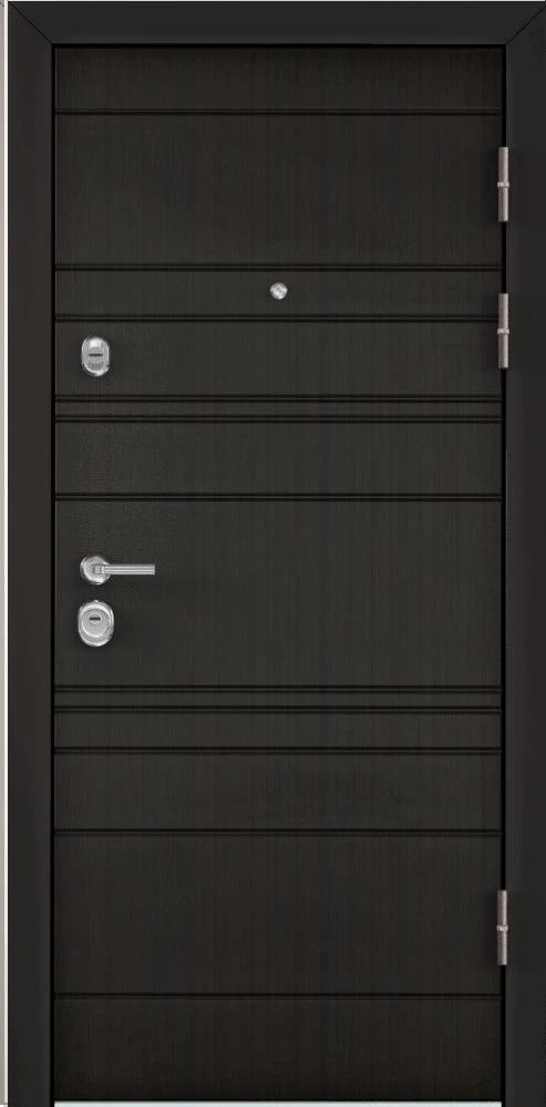 Надежная входная Дверь Цербер 3К(Чёрная) Горизонт Венге(Сменная панель) премиум класса по цене 42 463 руб. Большая толщина стали защитит от проникновения в ваш дом, квартиру или коттедж. Используется очень качественная фурнитура: замки, цилиндры, ручки, защелки. Покрытие и отделка двери изготовлено под внимательным контролем производителя. Дверь имеет долгий срок службы и гарантию.